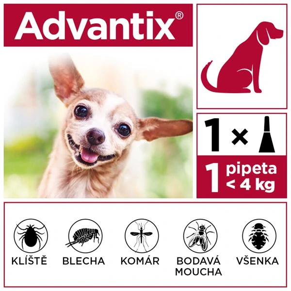 ≤4 kg | Advantix spot-on roztok pre psy do 4 kg | 0,4 ml | minimum 10 | minimum 50 |