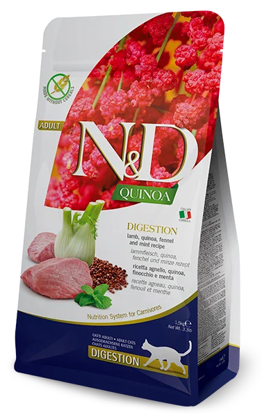 Farmina N&D cat QUINOA (GF) adult, digestion, lamb 0,3 kgskladom 5 ks6,95 EUR/ ks5,65 EUR bez DPH