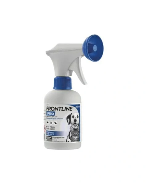 Spôsob použitia: Zo vzdialenosti asi 10-20 cm postriekať povrch celého tela zvieraťa v smere proti srsti. Vhodné je súčasne použiť kefu alebo hrebeň (celá srsť by mala byť prípravkom rovnomerne zvlhčená tak, aby prípravok mohol preniknúť až na kožu). Na ošetrenie hlavy a okolia očí nastriekajte prípravok na navlhčenú rukavicu a jemne vtierajte do srsti. Ochrana proti opätovnému napadnutiu blchami trvá u psa od jedného do troch mesiacov a u mačky asi 6 týždňov. Proti kliešťom u psov trvá ochrana až 5 týždňov a u mačiek až 4 týždne. Nedoporučuje sa kúpanie 48 hodín pred a po ošetrení. Frontline spray nezabráni všetkým kliešťom uchytiť sa, ale všetky kliešte usmrtí v nasledujúcich 24 – 48 hodinách, skôr ako dôjde k úplnému napitiu kliešťa a prípadnému prenosu choroby (napr. lymskej boreliózy). Usmrtené kliešte najčastejšie odpadnú, alebo môžu byť jednoducho ručne odstránené.