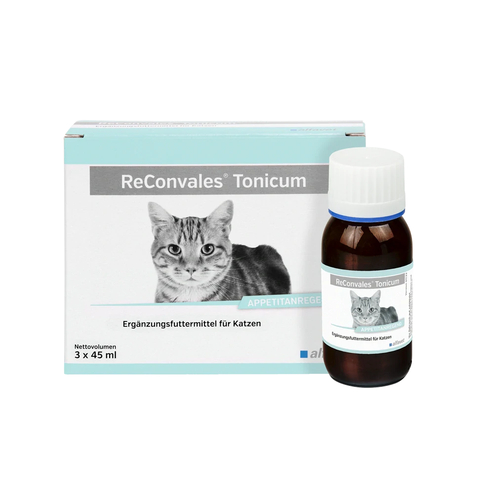 ReConvales® Tonicum podporuje chuť do jedla u mačiek. Zaisťuje dostatočnú zásobu tekutín a poskytuje vysokokvalitné bielkoviny, vitamíny, stopové prvky a minerály.