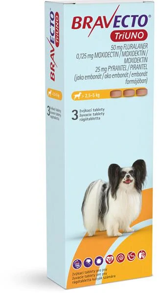 BRAVECTO TriUNO žuvacie tablety pre psy (> 2,5-5 kg)