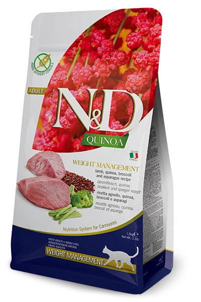 Farmina N&D Quinoa Weight Management je krmivo pre zvláštne účely výživy určené na zníženie nadmernej telesnej váhy.