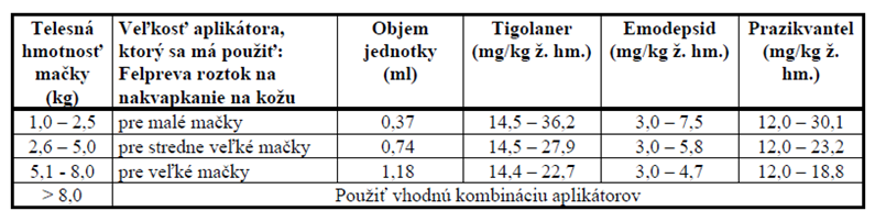 telesnej hmotnosti, 12 mg prazikvantelu/kg telesnej hmotnosti, čo zodpovedá 0,148 ml lieku/kg