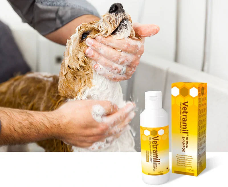 Vetramil Dermashampoo bol špeciálne vyvinutý pre psy s problémami podráždenia pokožky, pH šampónu udržuje prirodzenú hodnotu kyslosti pokožky, tiež zachováva neporušený lipidový film, ktorý pokrýva a chráni pokožku.